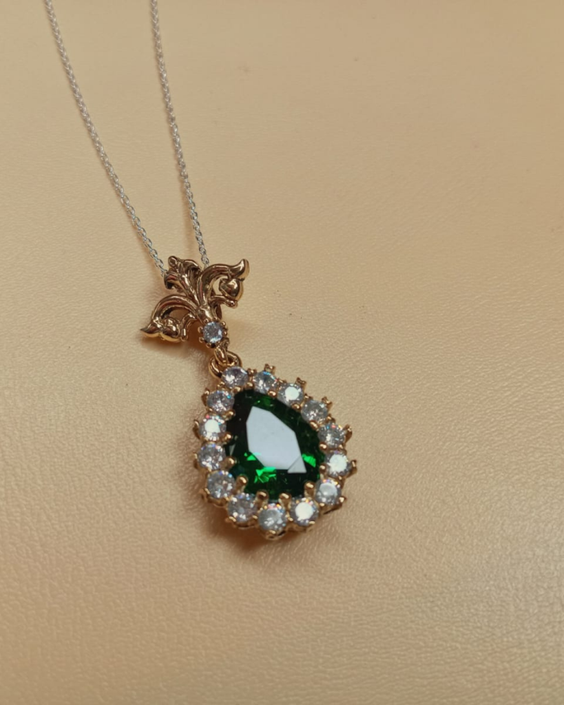 Las piezas de la colección Hürrem están elaboradas en plata 925, con una piedra protagonista que lo dice todo sin palabras: La circonita color esmeralda, símbolo de realeza, sabiduría y encanto.