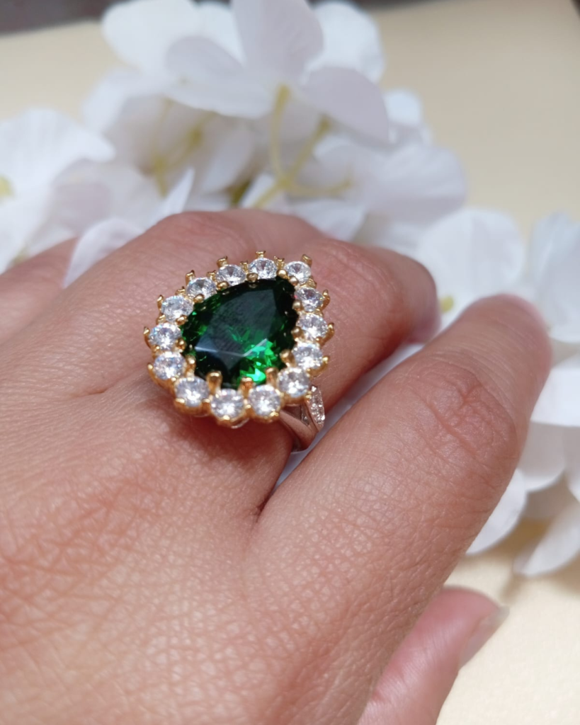 Las piezas de la colección Hürrem están elaboradas en plata 925, con una piedra protagonista que lo dice todo sin palabras: La circonita color esmeralda, símbolo de realeza, sabiduría y encanto.