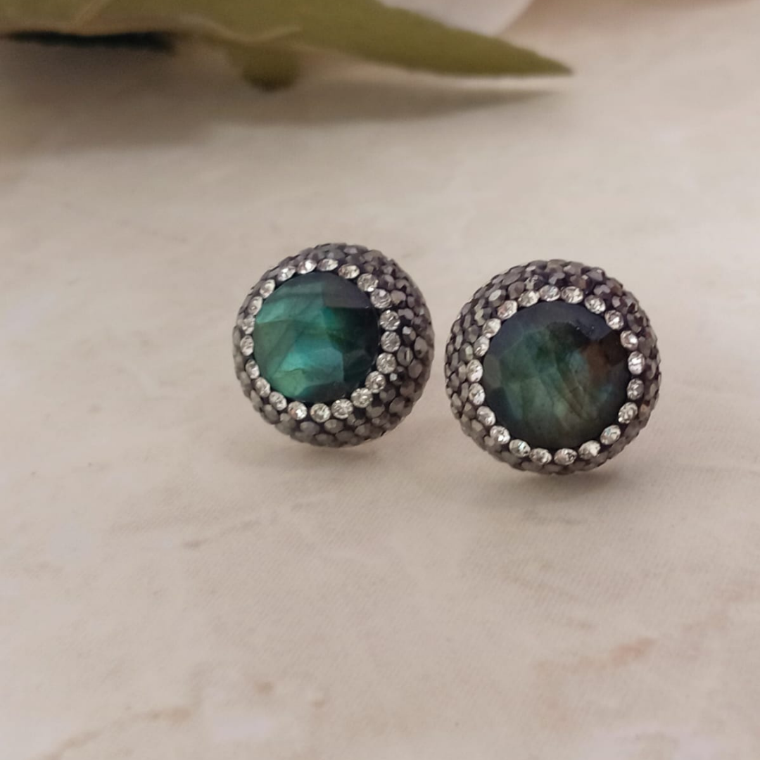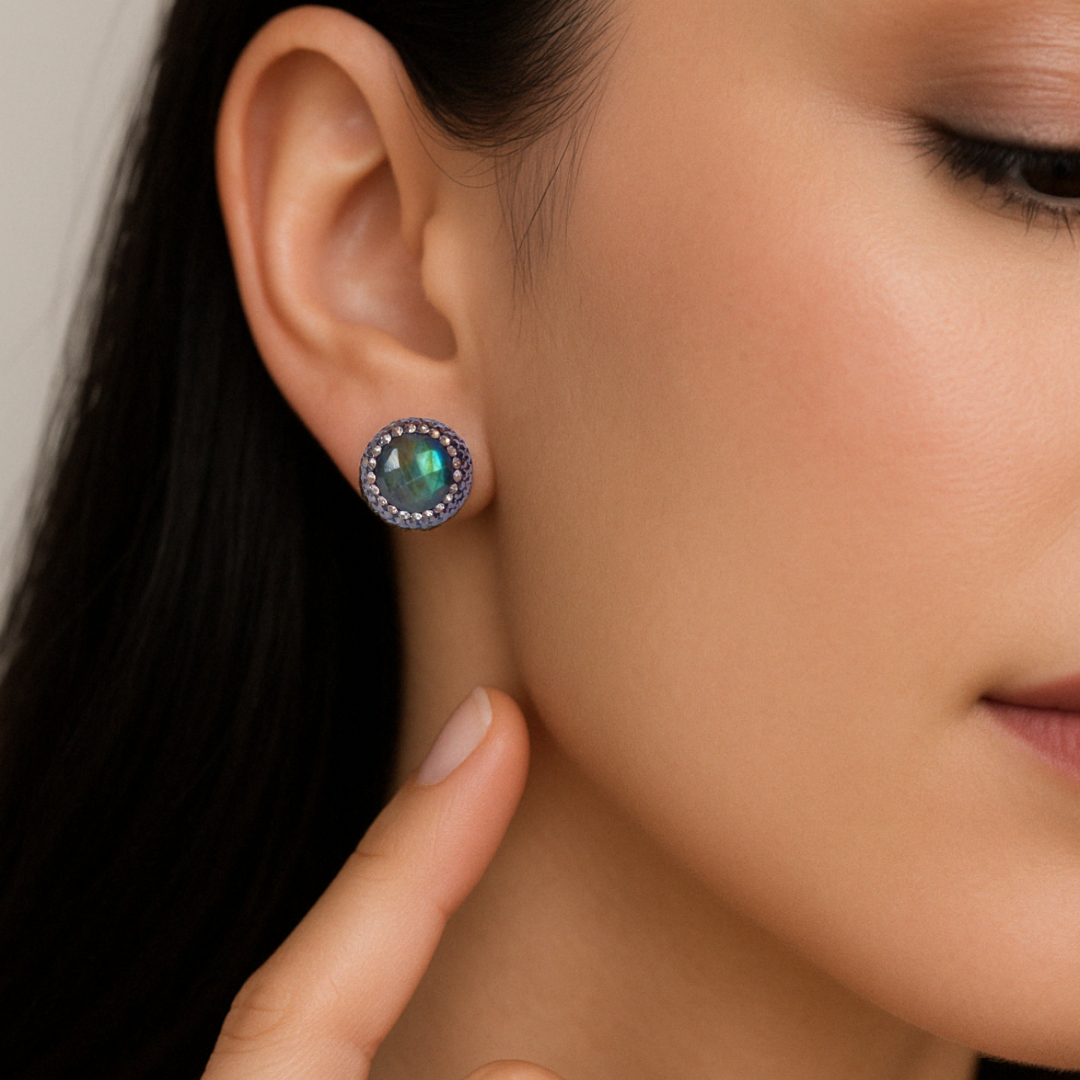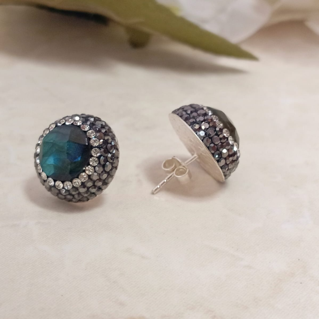 Los aretes de labradorita natural han sido cuidadosamente elaborados a mano por artesanos turcos, combinando plata 925 con el brillo místico de esta piedra protectora.